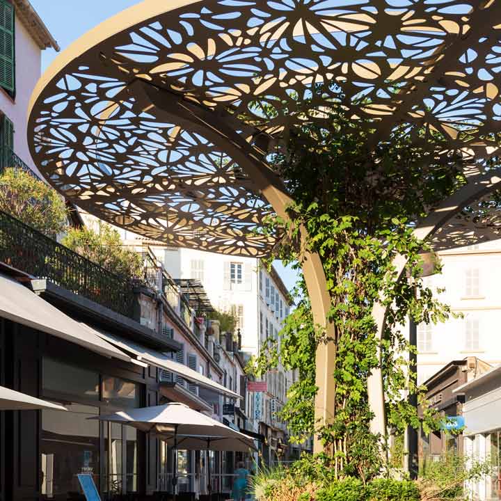Réduction de la chaleur urbaine : Grâce à l'effet de refroidissement naturel des plantes, ces ombrières diminuent l'effet d'îlot de chaleur urbain, créant des zones agréables et climatiquement supportables même pendant les vagues de chaleur.